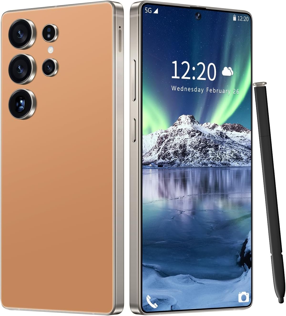 I25 Ultra Unlocked Phone 16+1TB,Built in Pen The Phone,Battery 7000mAh 6.99″ HD Screen,Android 14 Smartphone,Face ID/5G/Fingerprint Lock/Dual SIM/GPS (Orange, 16+1TB)