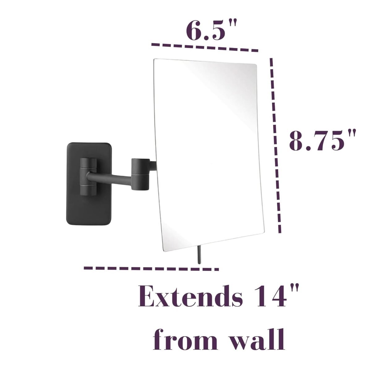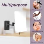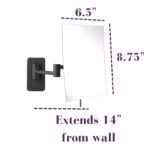 SPECIFICATIONS – This makeup mirror includes an extendable wall-mounting with 5X magnification. The mirror has a modern black base and includes mounting hardware for your convenience. The mirror measures 8.75 by 6.5 inches and has a 1-year warranty. This mirror comes with a 6.5’ power cord and plug.