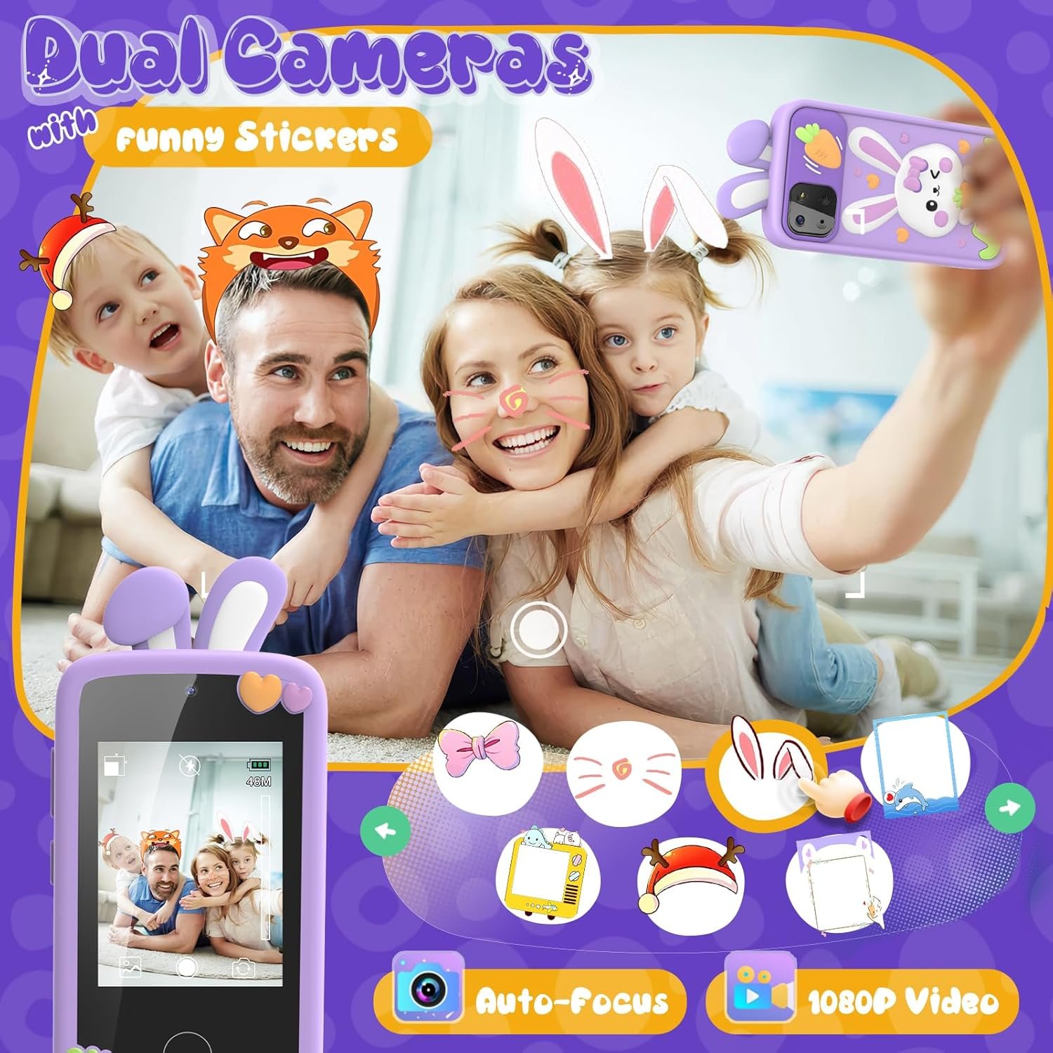 š¦[Camera Phone for Kids] – Kids toy cell phone has 10MP and 1080P camera so that kids can record every moment they like. The phone comes with dual cameras for stress-free front and back photos. You can also add a variety of popular photo stickers to make photos more interesting while stimulating kids’ creativity and imagination.