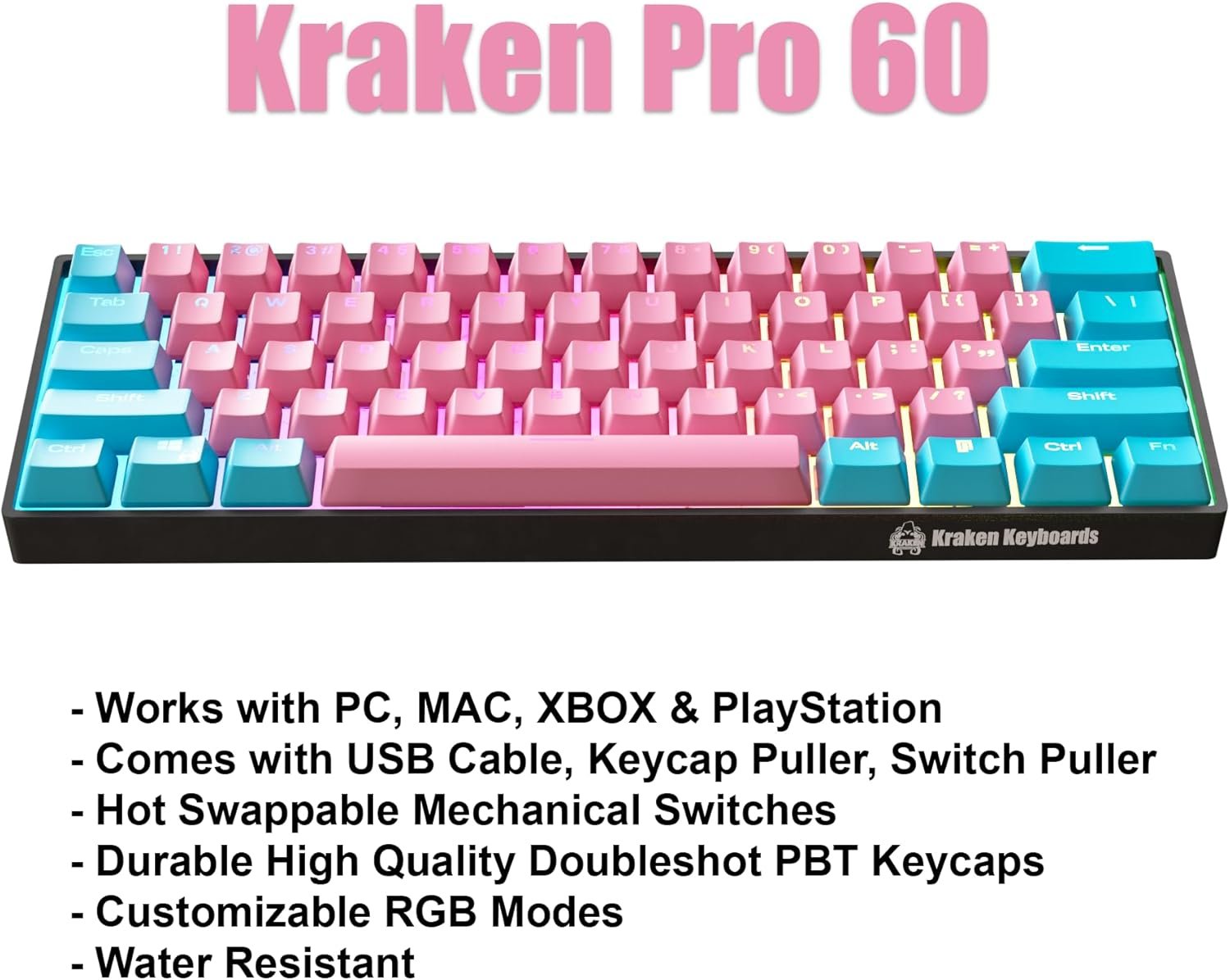 Kraken Pro Cotton Candy 60% Mechanical Keyboard for PC, XBOX, PlayStation & Mac