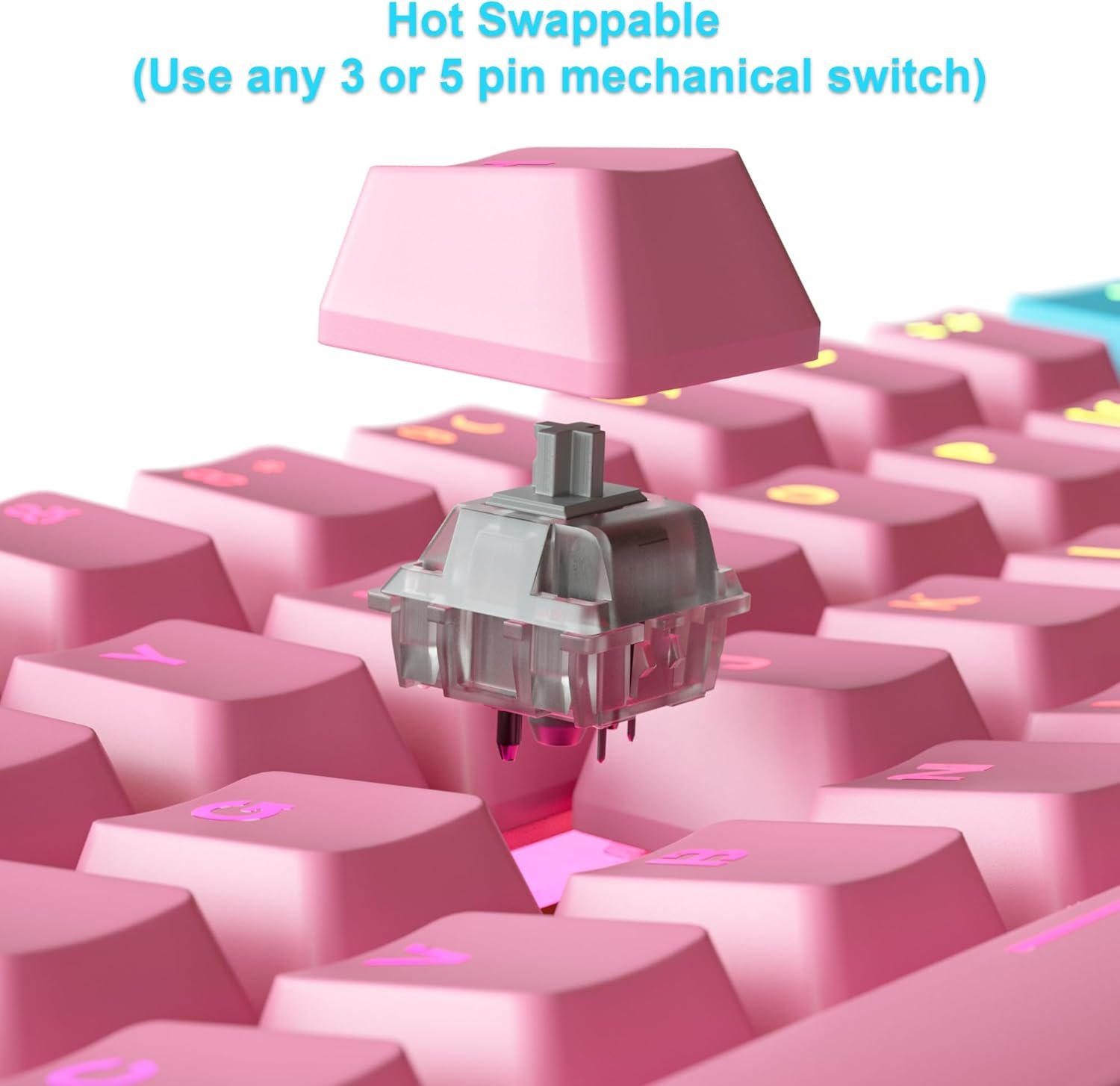 Blue & Pink Mechanical Gaming Keyboard with Hot Swappable Mechanical Switches so you can easily swap out with ANY mechanical switches you prefer