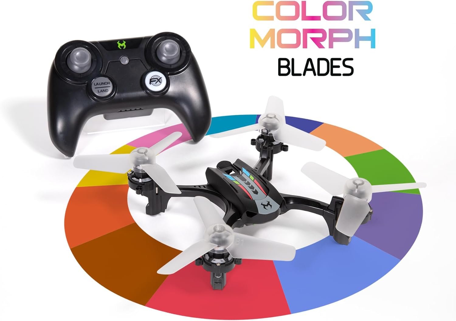 24 RGB LIGHT ZONES – Each propeller has 6 Independently controlled LEDs, which create organic patterns of color that flow within each blade and across the entire surface area of the drone.