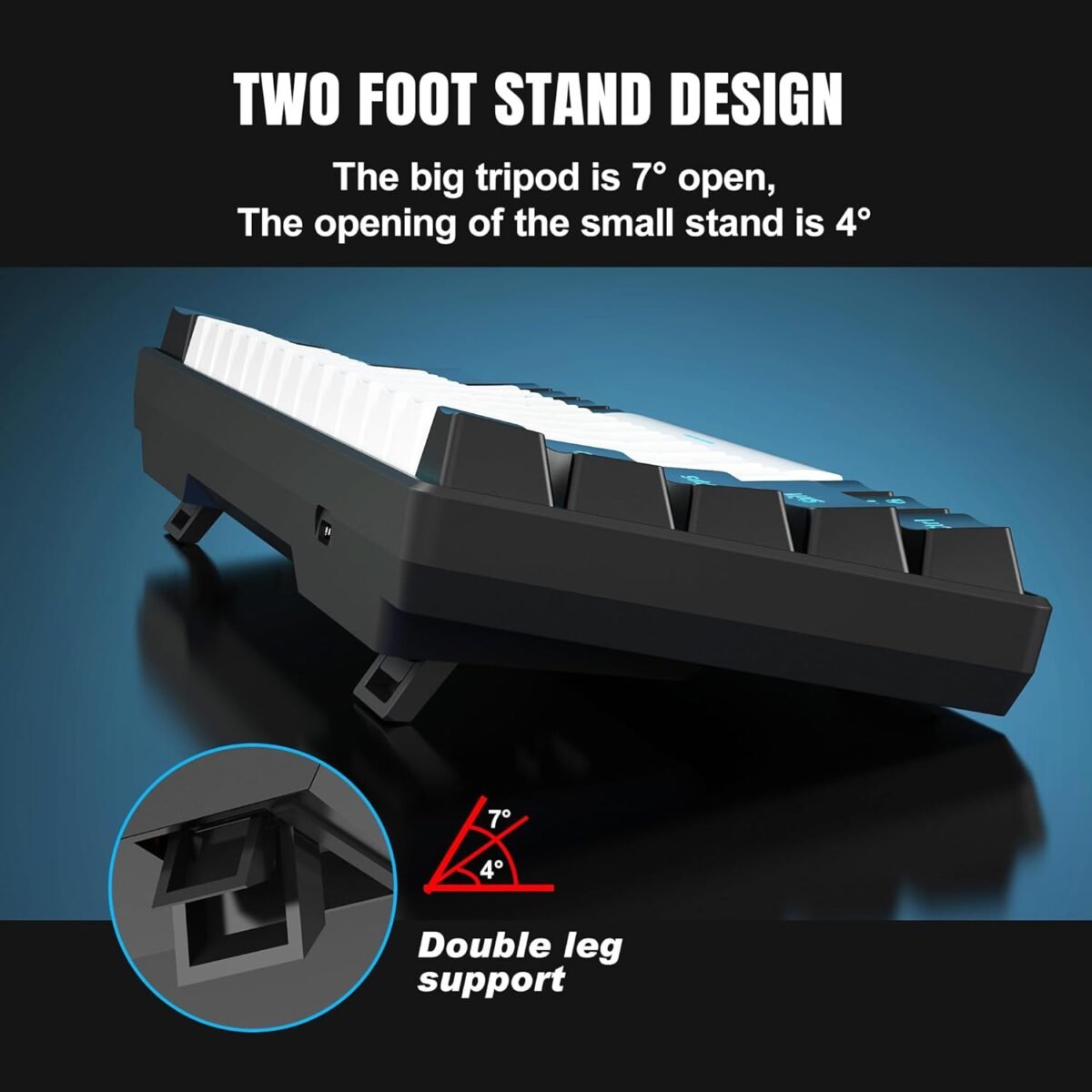 Ergonomic Design — This 60% mechanical gaming keyboard has two feet stands which can adjust the placement angle, so you can use it for a long time without feeling tired