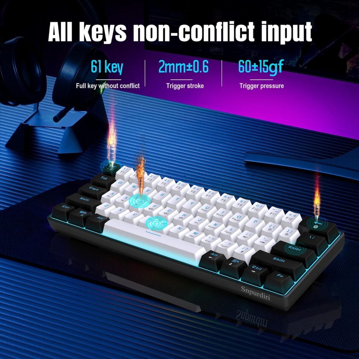 Be the first to review “Snpurdiri 60% Wired Mechanical Gaming Keyboard, Ice Blue LED Backlit 61 Keys Mini Wired Office Keyboard for Windows Laptop PC Mac (Black-White, Blue Switches)”